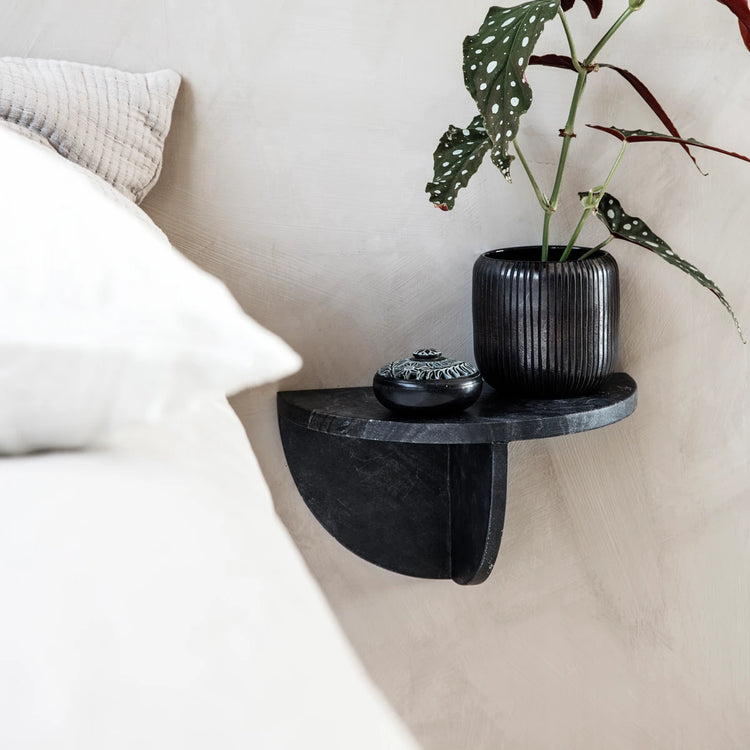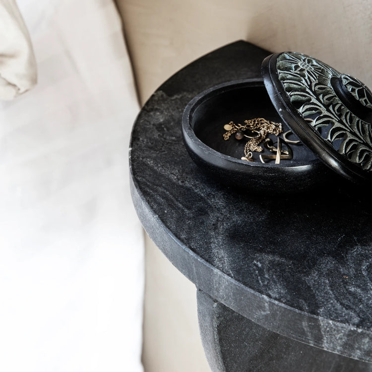 Dette smukke og elegante sidebord fra House Doctor er helt perfekt som natbord i soveværelset eller som en lille svævehylde i entréen. Mega er lavet af marmor og messing, hvilket er med til at give det et helt unikt udtryk. Med den sorte nuance passer det perfekt ind i ethvert hjem uanset indretningsstil.
