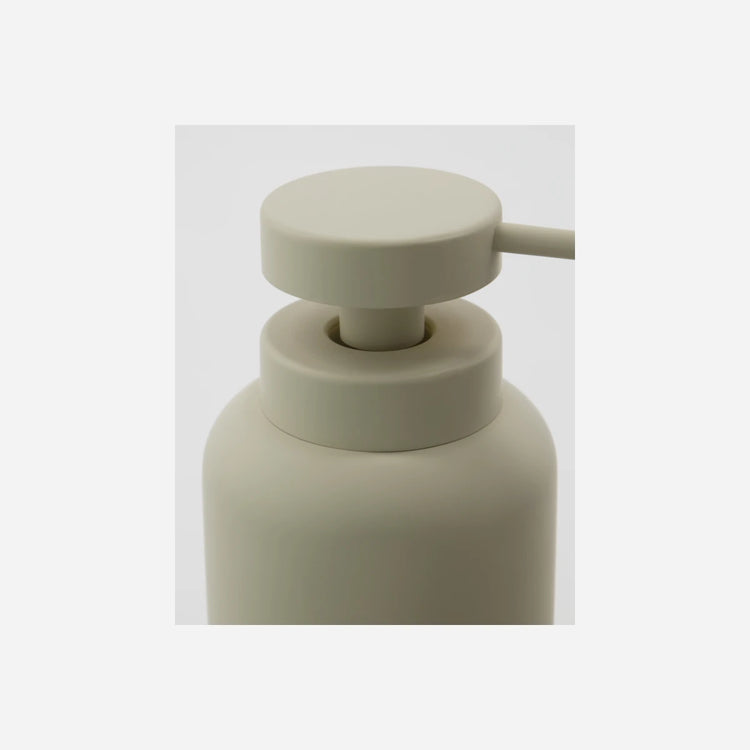 HDWah-sæbedispenseren er lavet i off-white stentøj med en mat glasur, der giver et stilrent og sammenhængende udtryk. Med sin afrundede form og neutrale farve passer den perfekt ind på både badeværelser og i køkkener.