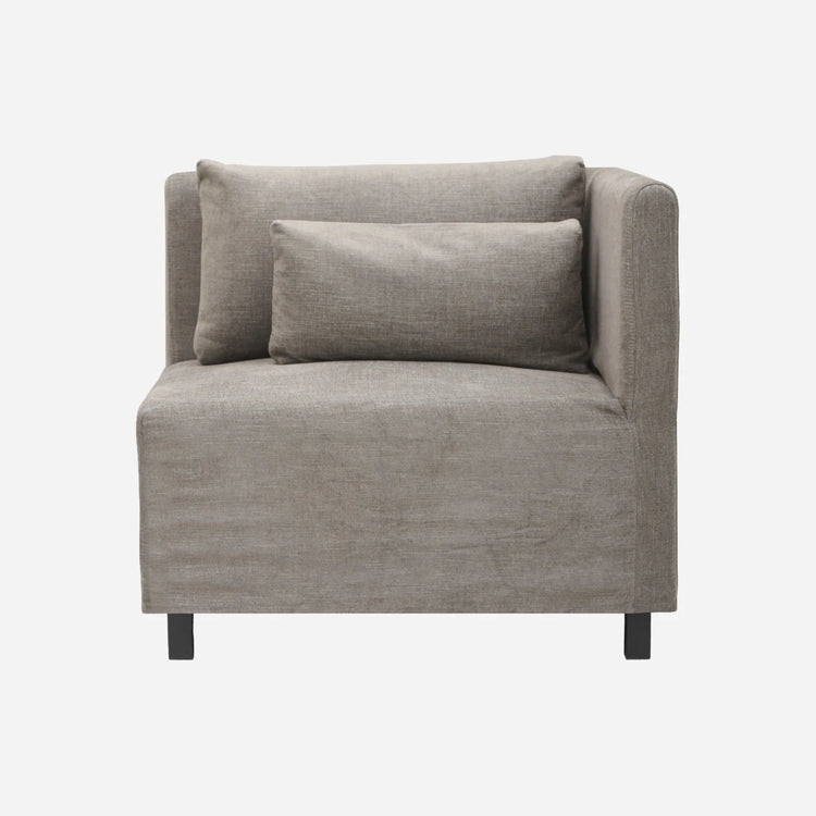 Efter en lang dag er der ikke noget bedre end at slappe af i denne sofa fra House Doctor. Det er hjørnesektionen i et modulsystem, som også tæller en puf og en midtersektion, der sammen udgør en komplet sofa. Sektionen her kan indgå som del af en større sofa eller bruges alene som en stol. Møbler udgør en fundamental del af din stues indretning og overordnede udtryk. Med Hazel Night får du en alsidig, stilet og holdbar sofa takket være den gråbrune farve og slidstærke bomuldsmateriale. Kombiner den med midtersektionen og puffen i samme farve, hvis du går efter en en hel sofa. Du får desuden to puder og pudevår med i samme materiale for at fuldende looket. Siddehøjden er 44 cm.