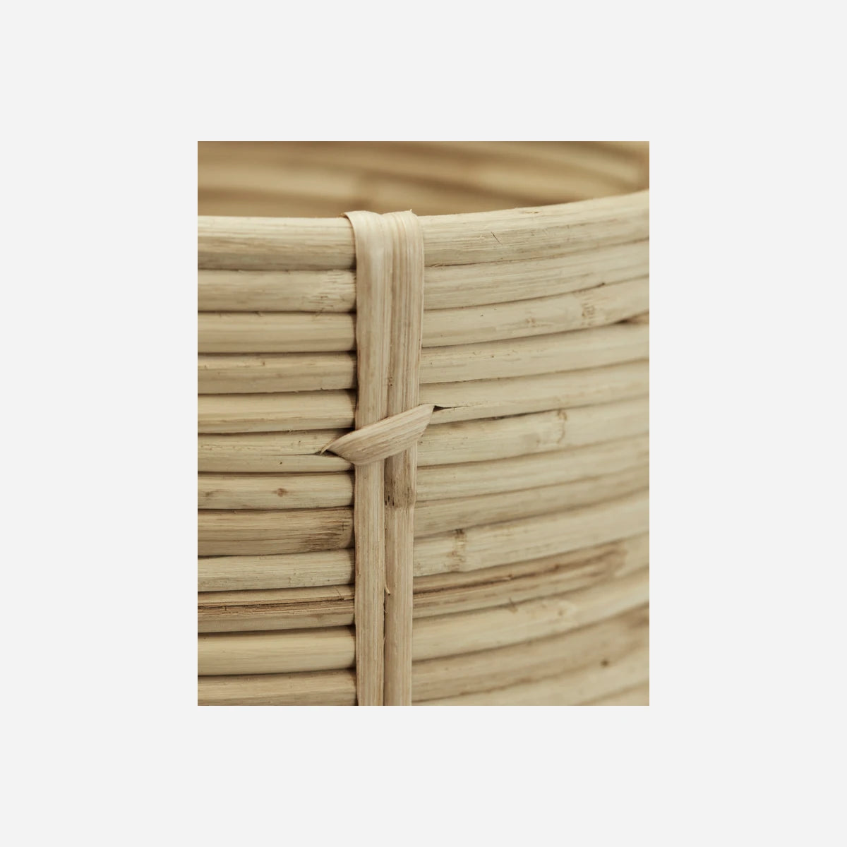 Inviter naturlig skønhed og funktionalitet ind i dit hjem med denne håndlavede kurv, der er fremstillet af en blanding af rattan og bambus. Kurvens design indfanger essensen af traditionelt håndværk med en naturlig farve, der passer til enhver indretning. Den er perfekt som paraplyholder og kan placeres i entréen eller bryggerset, hvor den både er stilfuld og praktisk. De håndvævede detaljer tilfører varme og et strejf af natur til dit interiør og gør den til en alsidig tilføjelse til din boligindretning. - Håndlavet rattan og bambus - Naturligt og alsidigt design - Perfekt paraplyholder - Ideel til indgangspartier Giv dit hjem et naturligt præg med denne udsøgte kurv.