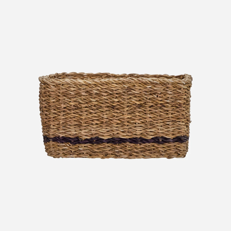 Opbevaringskurvene løfter din indretning med naturlig charme. De er håndlavet i flettet søgræs og elegant fremhævet med en diskret sort stribe. Det firkantede formsprog og varme udtryk skaber et unikt blikfang på badeværelset, i entréen eller på reolen. Brug dem til at organisere alt lige fra tørklæder til legetøj eller aviser – kun fantasien sætter grænser for, hvor de kan pynte og skabe orden.