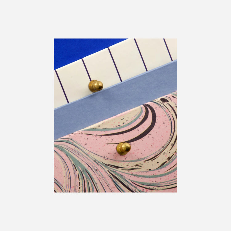 - Pink marmormønster og dueblå inderside.