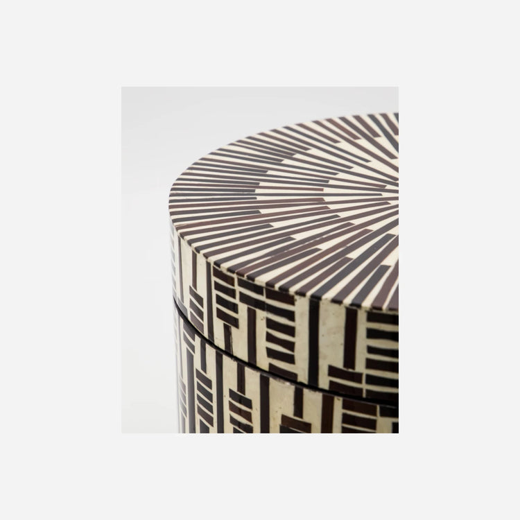 Tilføj et strejf af unik stil og personlighed til dit hjem med disse smukt udformede opbevaringsbokse. Sættet består af to størrelser, som hver især har fantastiske håndlavede bambusmosaikmønstre i en kombination af sarte mørkebrune toner og cremefarver. Kasserne er perfekte til at tilføje et dekorativt element til din stue eller dit soveværelse, og de giver også praktiske opbevaringsløsninger.- Håndlavet bambusmosaik-design- Sættet indeholder to størrelser- Dekorativ og funktionel- Rige brune og cremefarvede tonerOrganiser og forskøn dit hjem med disse opsigtsvækkende opbevaringskasser.