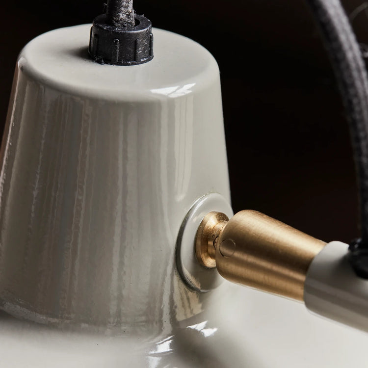 Med denne elegant designede bordlampe kan du tilføre et strejf af moderne industriel stil til ethvert rum. Denne grå lampe kombinerer rene linjer og en glat emaljefinish, hvilket gør den både moderne og tidløs. Perfekt til kontoret, stuen eller natbordet, den giver et løft til ethvert rum.- Industrielt design, emaljefinish- Alsidig stil til ethvert rum- 2,5 m sort stofkabel- Hvid inderside for lysstyrkeOplys dit rum med stil og elegance.