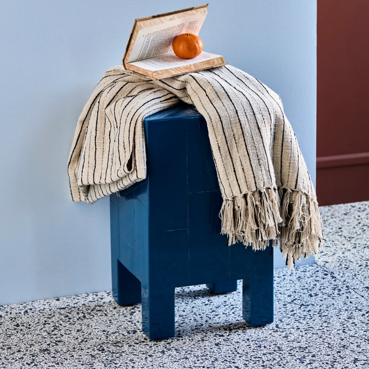 De bløde striber og de lange frynser skaber et moderne og personligt udtryk. Brug den til at forvandle sofaen i stuen, eller sving den let over en loungestol, hvor den inviterer til varme stunder og hyggelige pauser.
