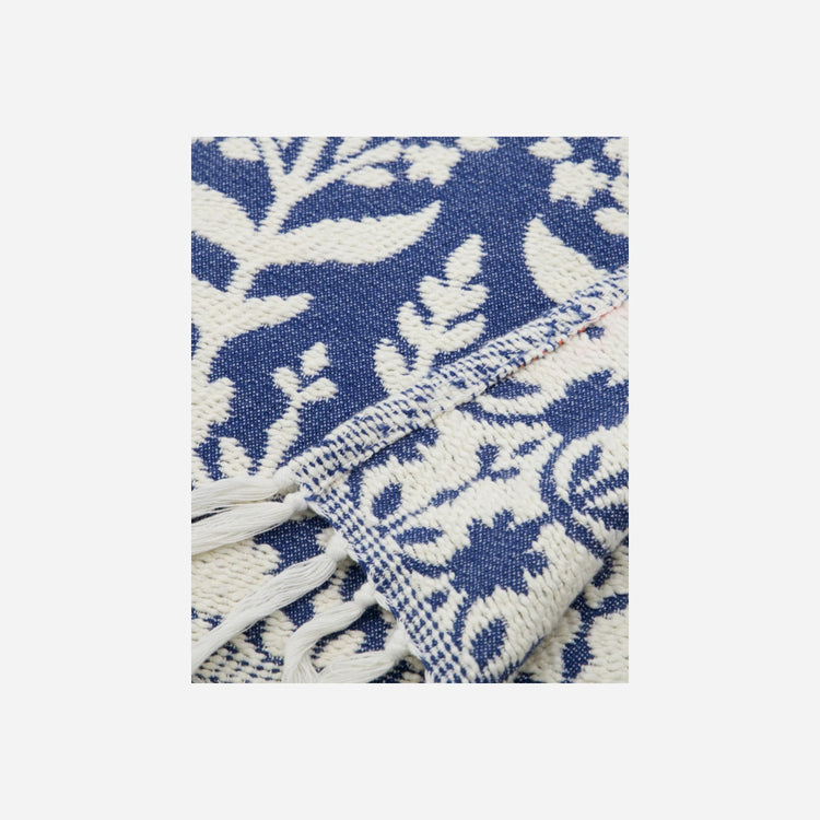 HDMazzo-plaiden er vævet i blød bomuld og har en smuk, blå farve med håndlavede detaljer, der tilføjer varme og karakter til rummet. Læg den over sofaen for et farverigt indslag, eller brug den som et blødt lag på sengen.
