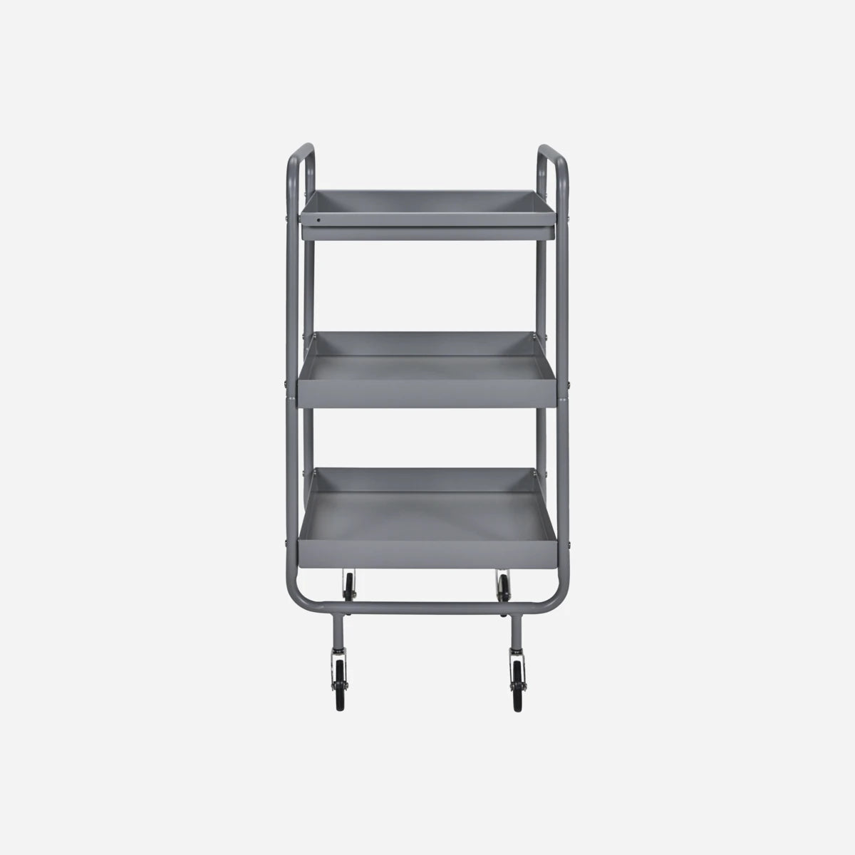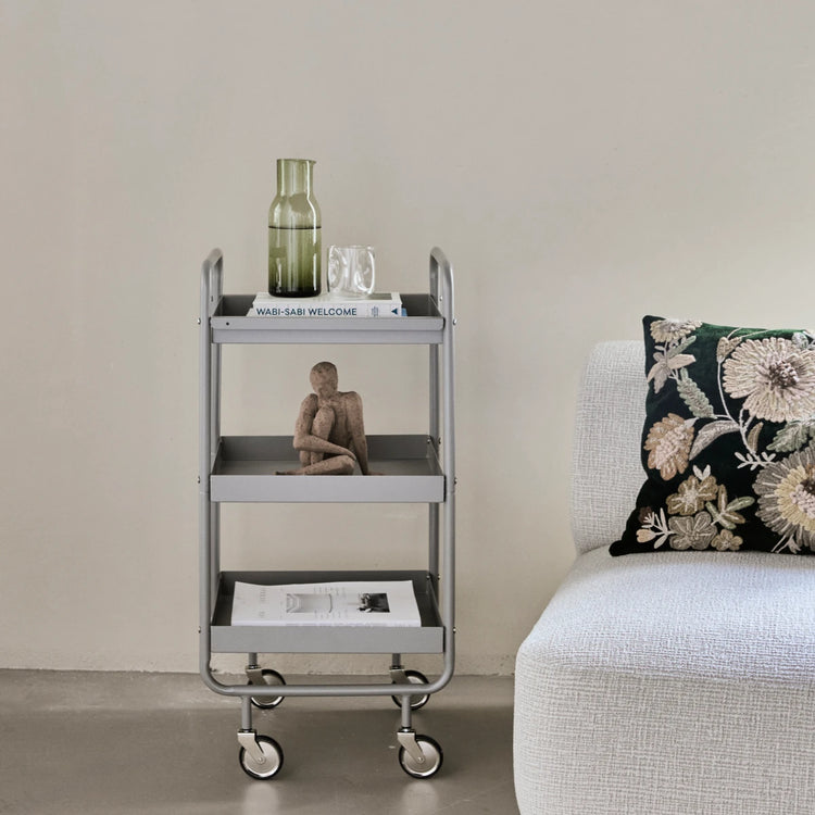 Leder du efter et møbel, hvor mulighederne er mange? Så har du brug for en trolley. Dette multifunktionelle design fra House Doctor er lavet af stål og fuldendt med et lag mat grå lak, der giver møblet et stilet udtryk. Den øverste hylde fungerer også som en bakke, du kan tage af, når du vil have morgenkaffen serveret på sengen. Placer trolleybordet i køkkenet eller brug den som et alternativ til en skænk eller reol i stuen. Uanset om du bruger trolleyen som en opbevaringsløsning eller til dekoration, bliver du aldrig træt af det alsidige design.