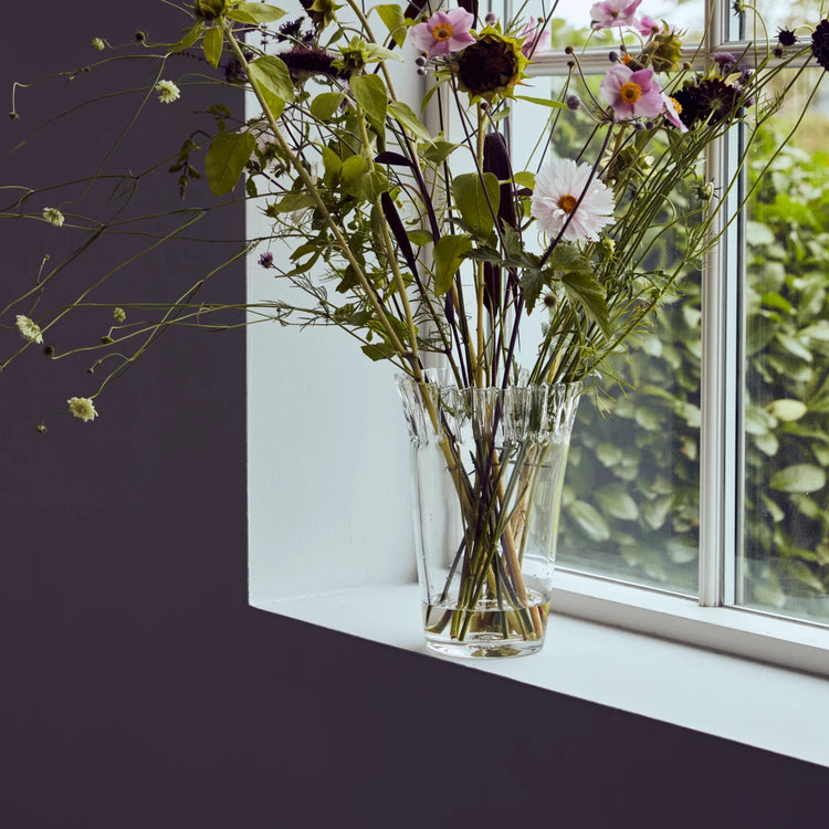 Giv dit hjem et elegant præg med denne håndlavede, mundblæste vase i klart glas. Dens gennemsigtige design og kunstnerisk foldede kant gør den perfekt til at arrangere smukke buketter i. Den er tidløs og passer perfekt til moderne indretning.- Håndlavet, mundblæst håndværk- Kunstnerisk design med foldet kant- Klart glas til moderne interiør- Perfekt til blomsterarrangementerTilføj et strejf af raffinement til din indretning med denne fantastiske vase.