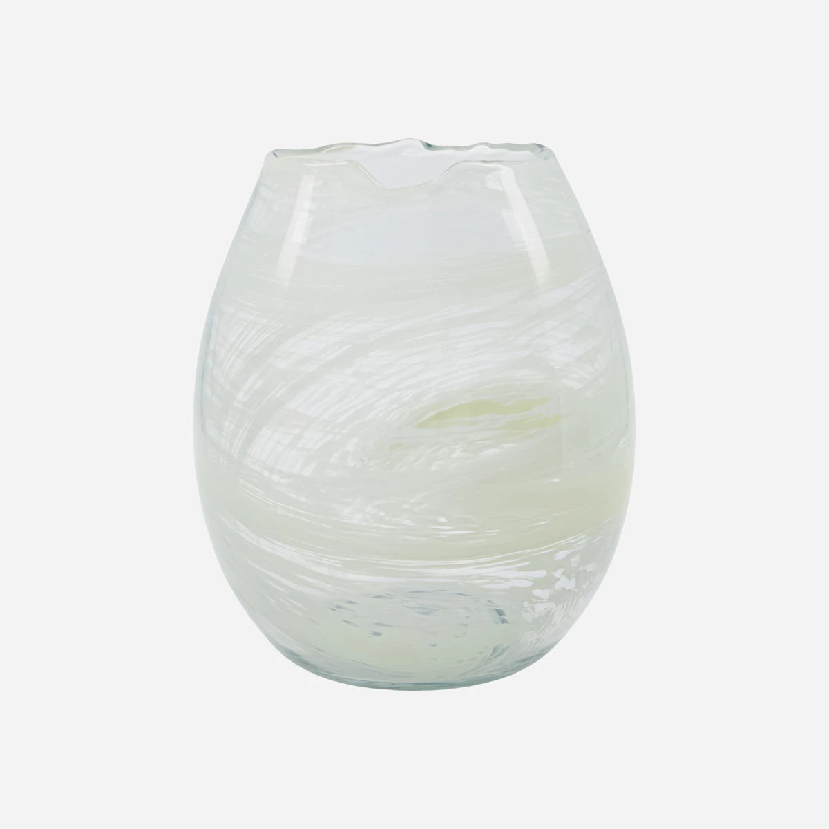 Den lille Jupiter-glasvase fra House Doctor giver nyt liv til din stue og gør rummet klar til forår og lysere tider. Et lysegrønt farvestænk og en ujævn kant giver vasen en dosis charme, som fortjener at blive highlightet i vindueskarmen eller på spisebordet. Fyld vasen med friske blomster som påskeliljer eller kom pyntede grene i den til påske. Vasens lette fornemmelse bliver kun endnu mere udtalt i et stilleben sammen med andre glasting som lysestager.