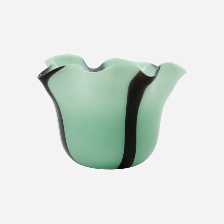 Denne stribede glasvase fra House Doctor kombinerer organiske, bløde former med en iøjnefaldende farve. Da vaserne er mundblæste og håndlavede, er hver vase helt unik, og den tilfører et touch af farve og charme til dit hjem. Fremhæv den asymmetriske form på et konsolbord eller en hylde, og brug den alene eller sammen med andre pynteting i lignende grønne farvetoner for at skabe et flot indtryk.