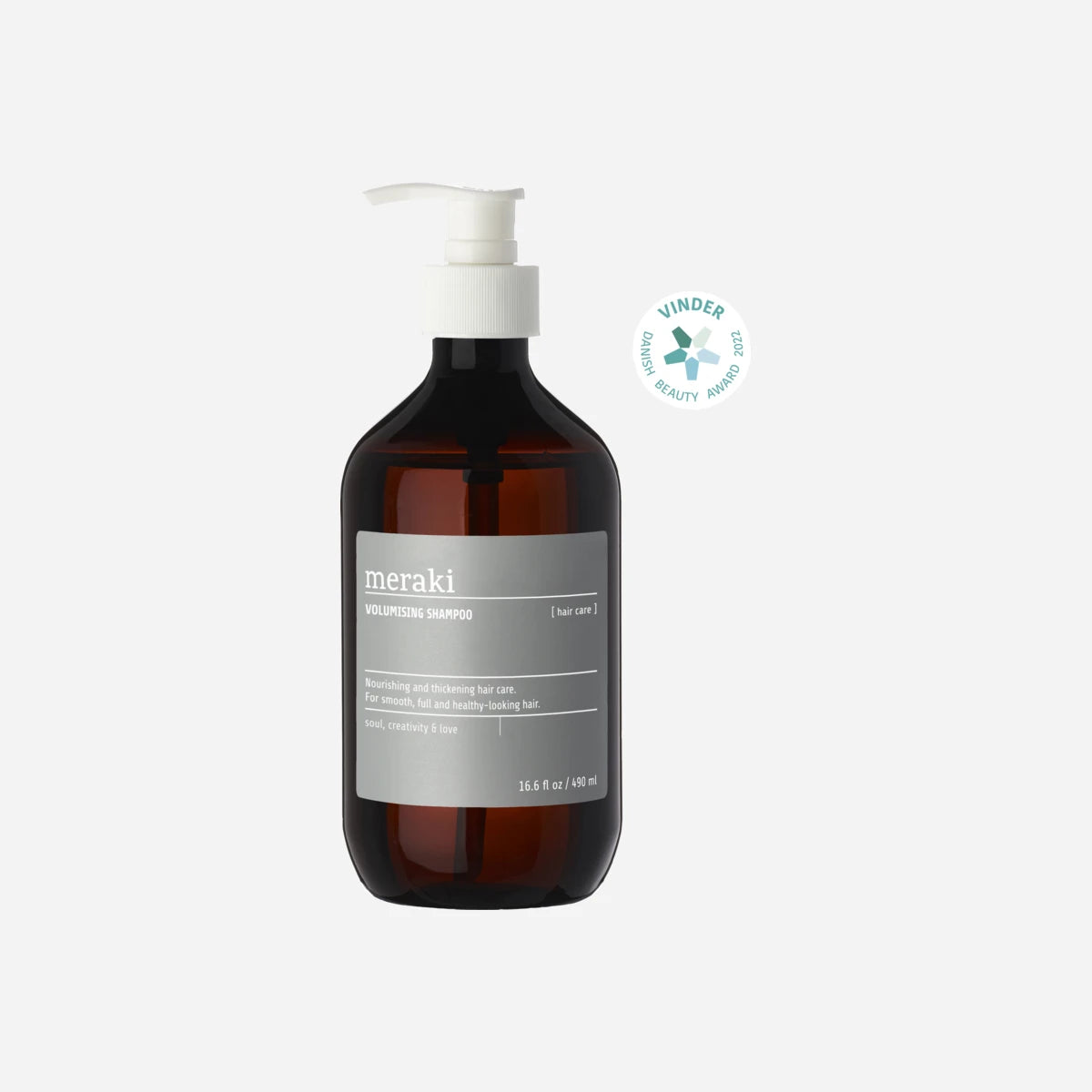 Lad denne nærende volumenshampoo fra Meraki give dit fine og tynde hår et boost med masser af fylde. Provitamin B5 giver ekstra pleje, mens ærteprotein lægger en film på hvert hårstrå og gør dit hår fyldigere, glattere og silkeblødt. Resultatet? Sundt udseende hår, der er let og fuld af elasticitet. Shampooen giver et blødt og lækkert skum med en raffineret duft af rose, jasmin, frisk agurk, sammen med et hint af musk.