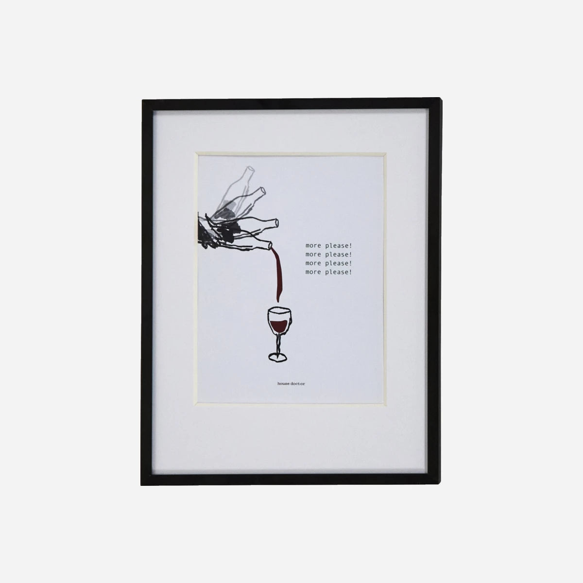 Giv dit køkken personlighed med denne legesyge vægkunst. Med et finurligt billede af et rødvinsglas, der fyldes, ledsaget af en humoristisk tekst, bringer dette værk både stil og smil frem. Kunstværket er elegant udstillet på papir, indkapslet i en elegant sort aluminiumsramme med et glasdæksel og fremhævet af en hvid passepartout. Det er perfekt til udstilling alene eller som en del af en serie, og det er en betænksom gave til enhver vinentusiast.- Humoristisk design med vin-tema- Elegant sort aluminiumsramme- Perfekt til køkkenindretning- Ideel gave til vinelskereSæt et legende præg på din køkkenindretning med denne charmerende vægkunst.