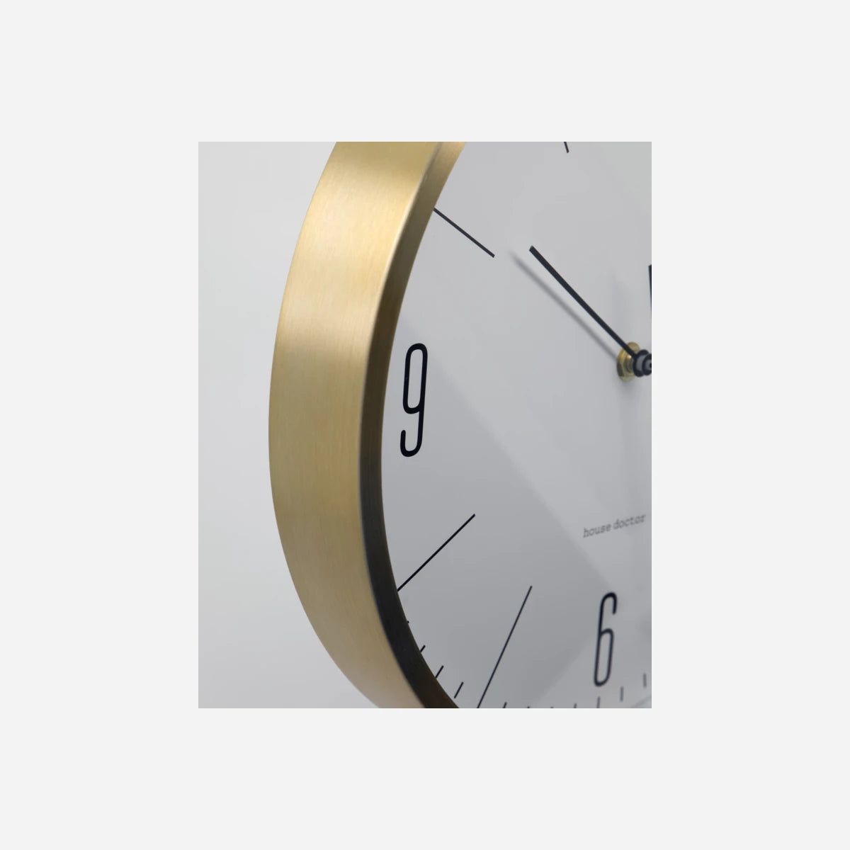 Tilføj et strejf af moderne elegance til dit hjem med dette udsøgte vægur. Det slanke design har en aluminiumsramme med en gylden finish, der problemfrit blander stil med funktionalitet. Sorte tal og visere skiller sig ud fra den hvide urskive og sikrer klarhed og nem aflæsning. Urets minimalistiske æstetik er perfekt til ethvert rum og giver en sofistikeret, men underspillet tilføjelse til din indretning.