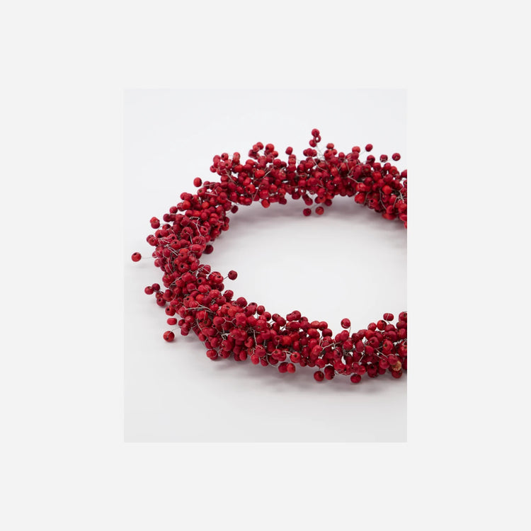 Når det kommer til klassisk julepynt, er der intet, der slår en bærkrans. Indret dit hjem med denne håndlavede krans fra House Doctor, som består af træperler på en metalramme. Hver lille, rød perle er forsigtigt placeret på en tråd og snoet, så den bliver på plads. En krans som denne fortjener al den opmærksomhed, den kan få. Placer den derfor i entréen som en velkomst til dine gæster eller på stuevæggen for et strejf af elegance. Ønsker du en fyldigere krans, kan du arbejde med perlerne og forme kransen, som du har lyst. Fås også i en større størrelse.