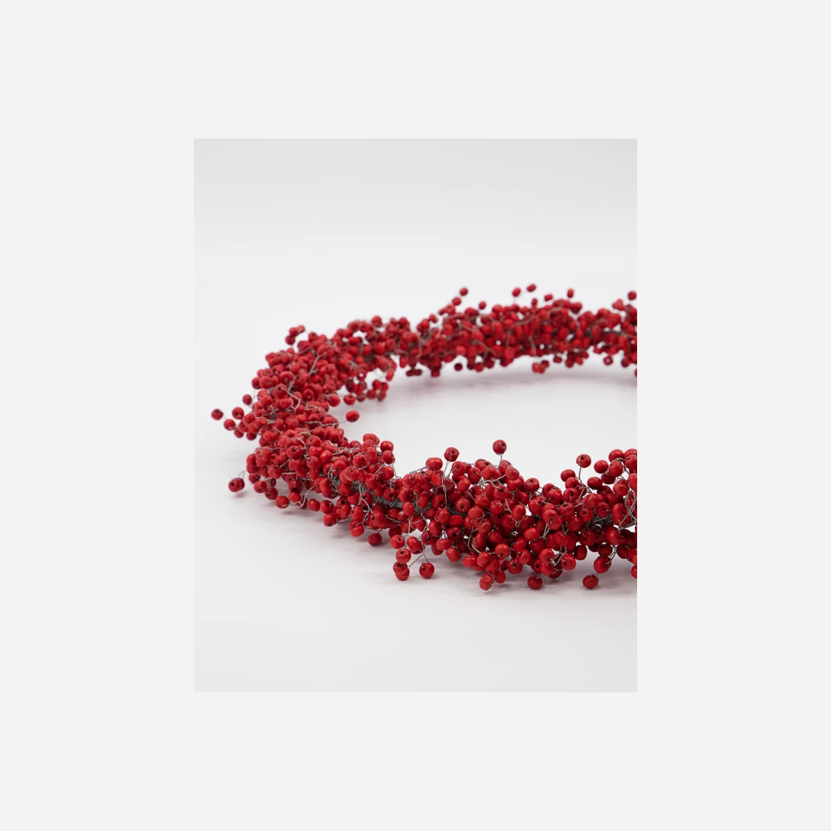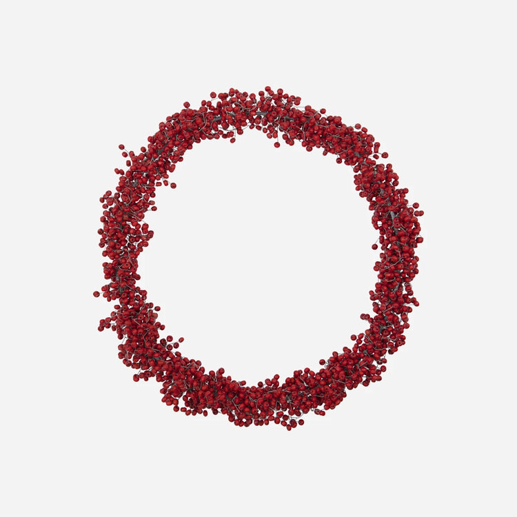 Hvad er mere klassisk og julet end en krans med bær? Ikke ret meget. Indret dit hjem med denne håndlavede krans fra House Doctor, som består af træperler på en metalramme. Hver lille, rød perle er omhyggeligt placeret på en tråd og snoet, så den bliver på plads. En krans som denne fortjener al den opmærksomhed, den kan få. Placer den derfor i entréen som en velkomst til dine gæster eller på stuevæggen for et strejf af elegance. Ønsker du en fyldigere krans, kan du arbejde med perlerne og forme trådene, som du har lyst. Fås også i en mindre størrelse.